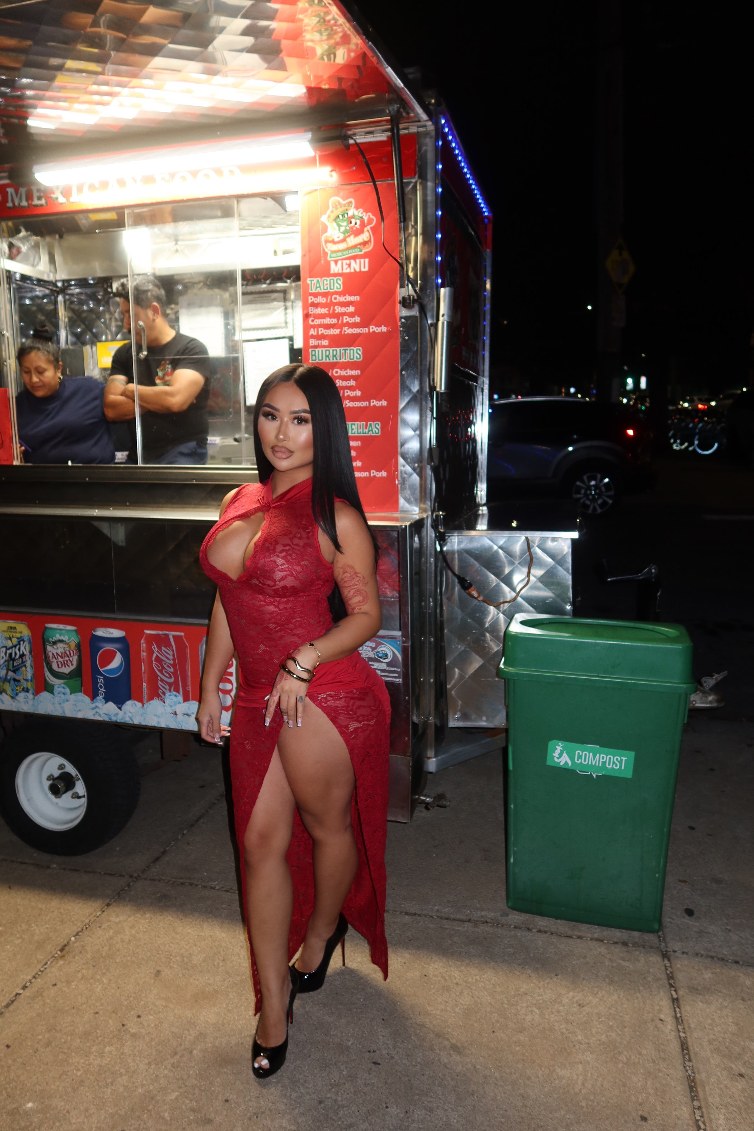 This dress will have all eyes on you! A lace dress featuring a slit in the leg along with a collar.